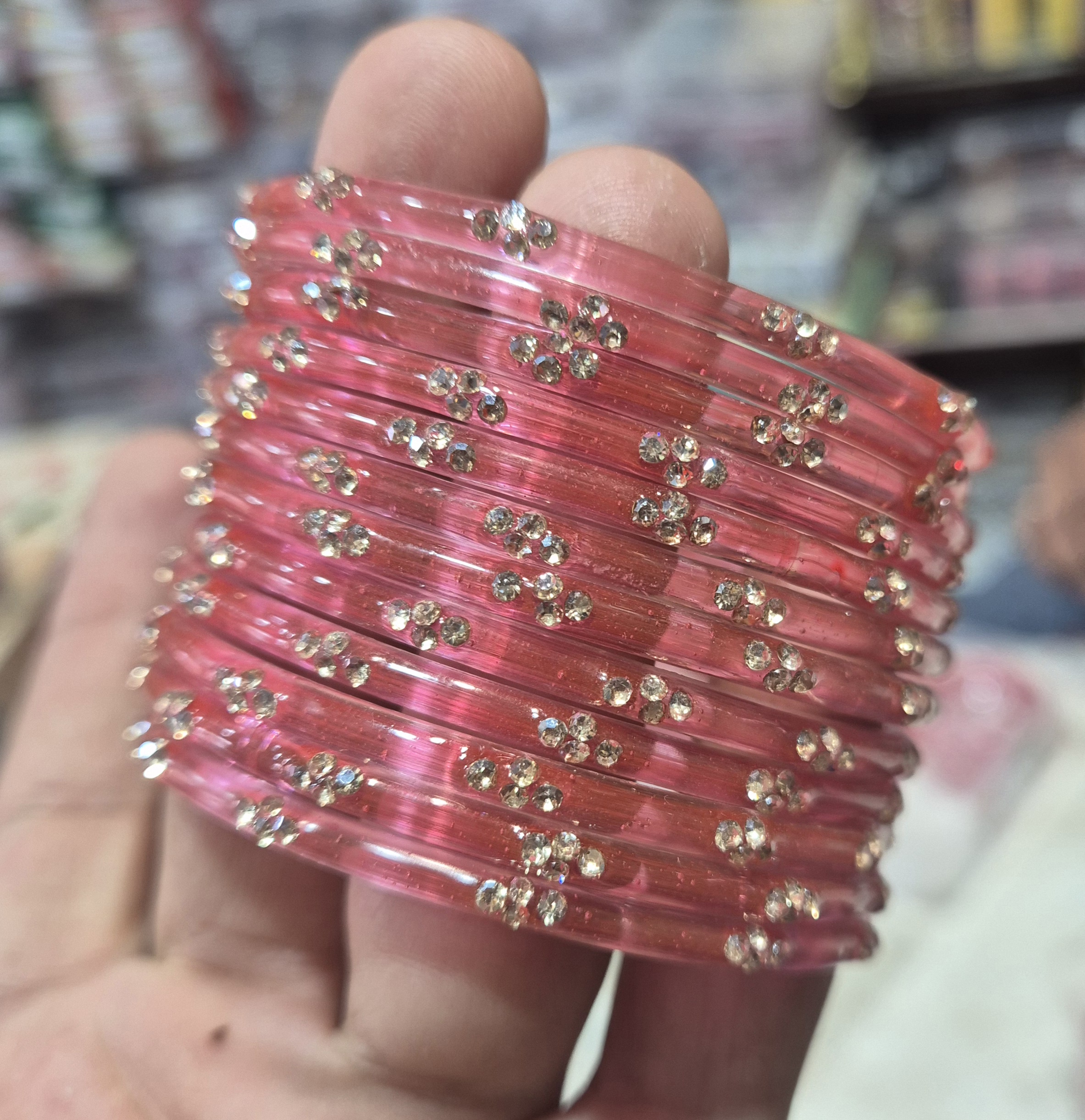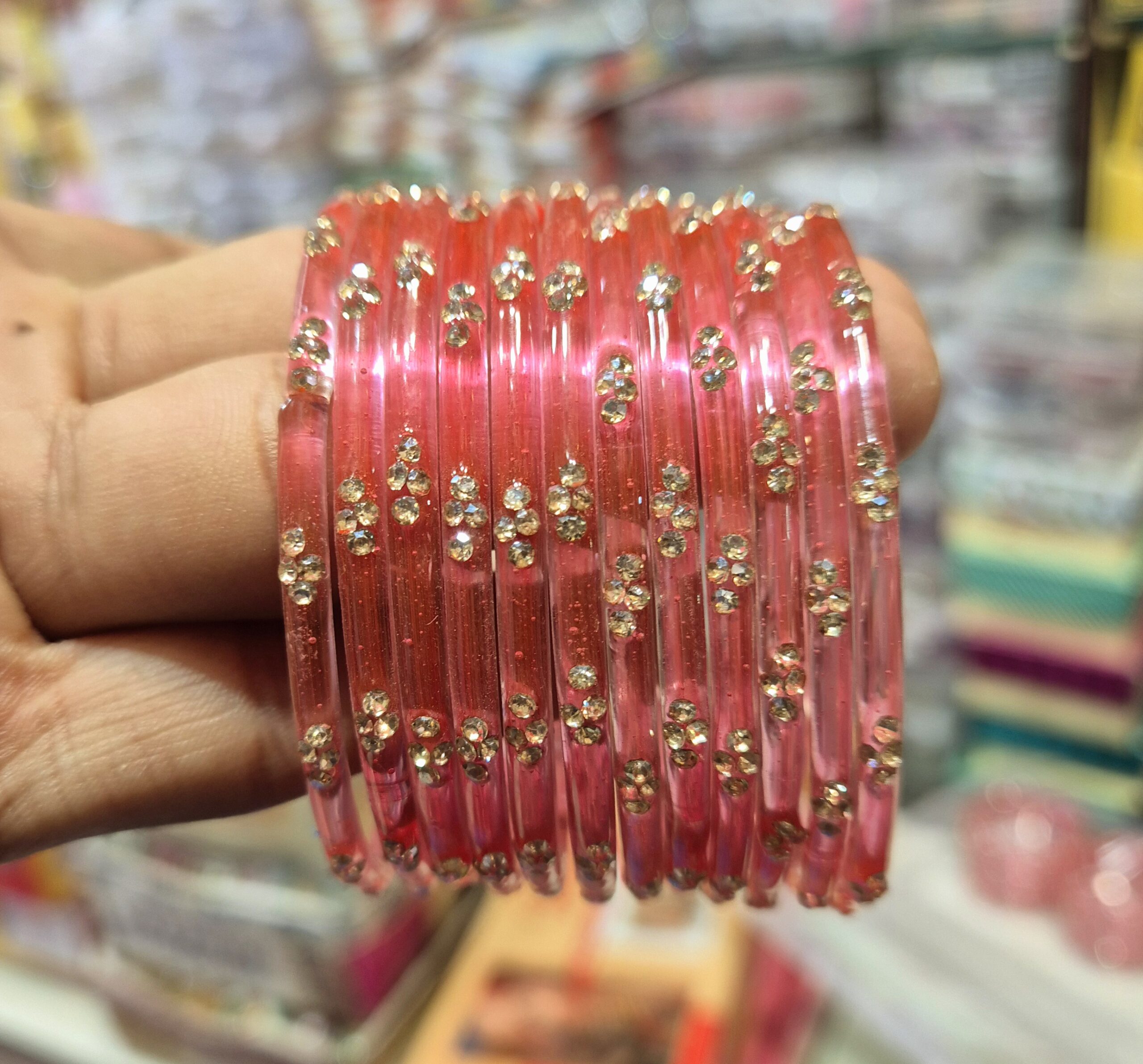 पिकं कलर मे काँच की 12 चुडी A6